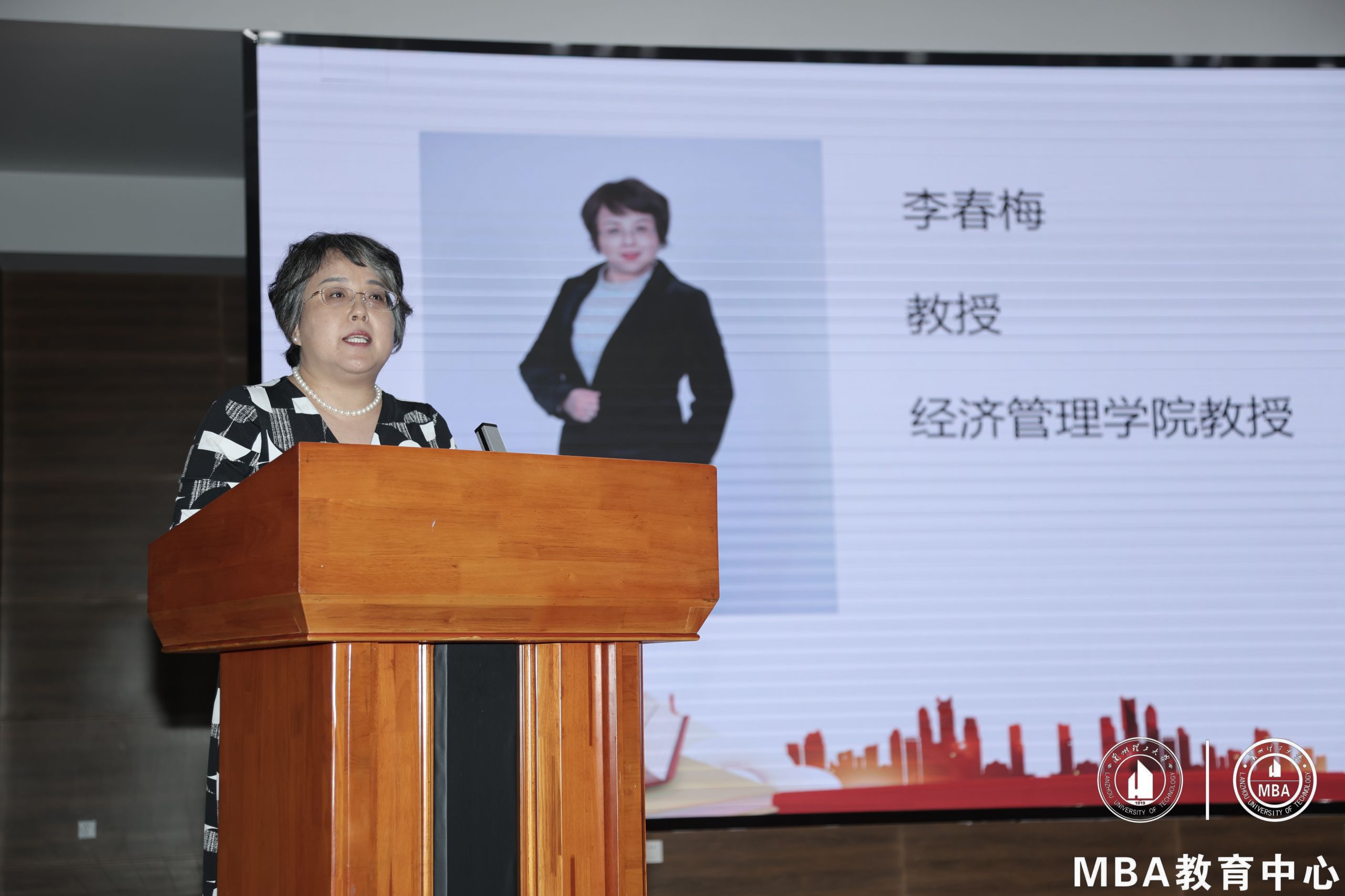 教师代表李春梅教授登台,她从“谋真才实学,建‘T型’能力;立系统思维,锻商业智慧;持守正笃实,成厚积薄发”三方面,阐释MBA教育在数字经济时代的育人关键,点出“当AI冲击传统工作,商学教育要培养人洞察人性的决策力等不可替代性”,为典礼注入学术深度与未来思辨。