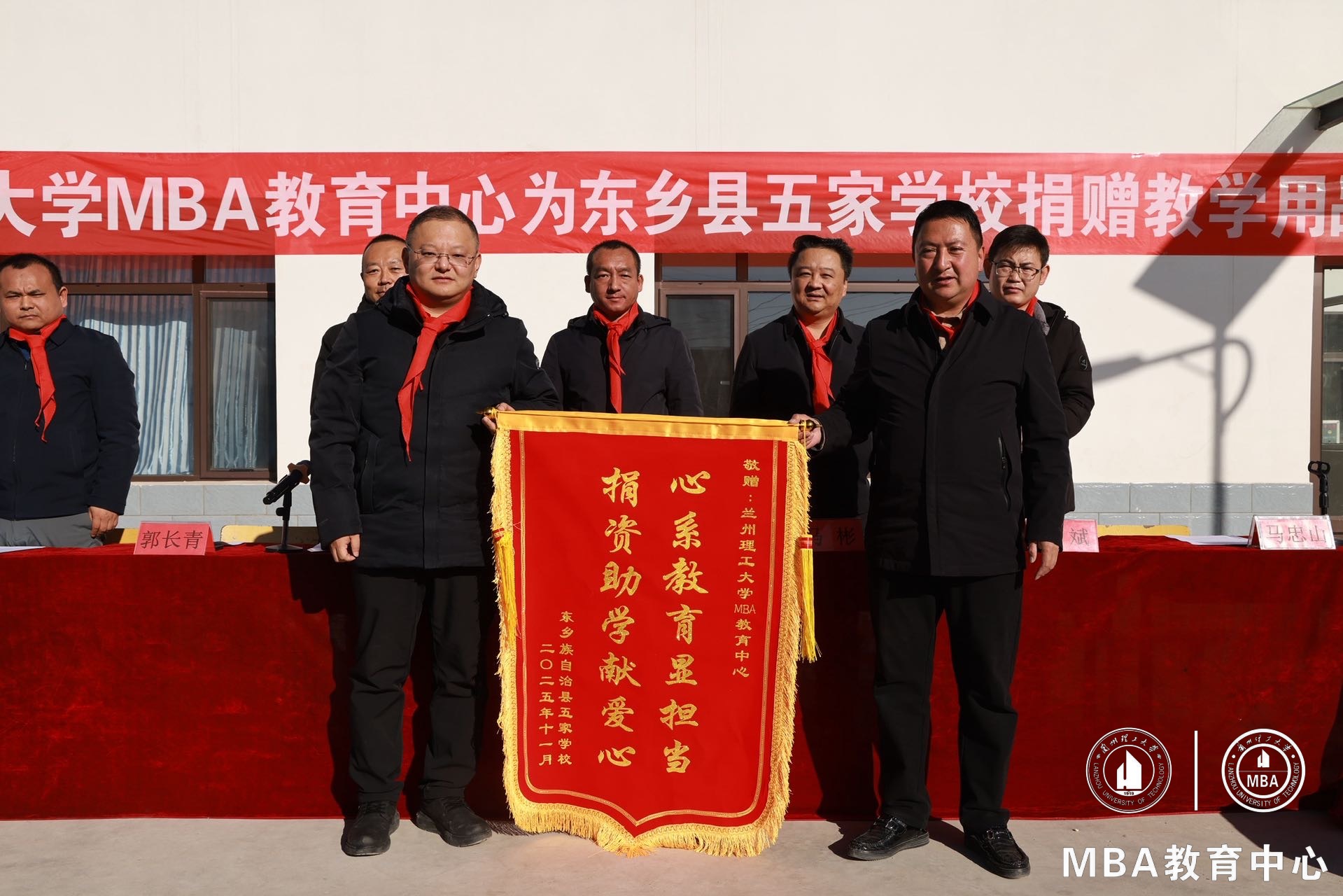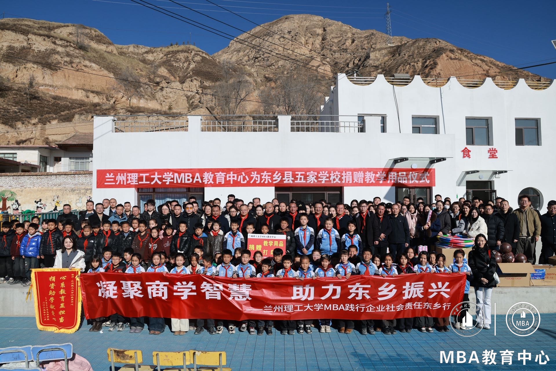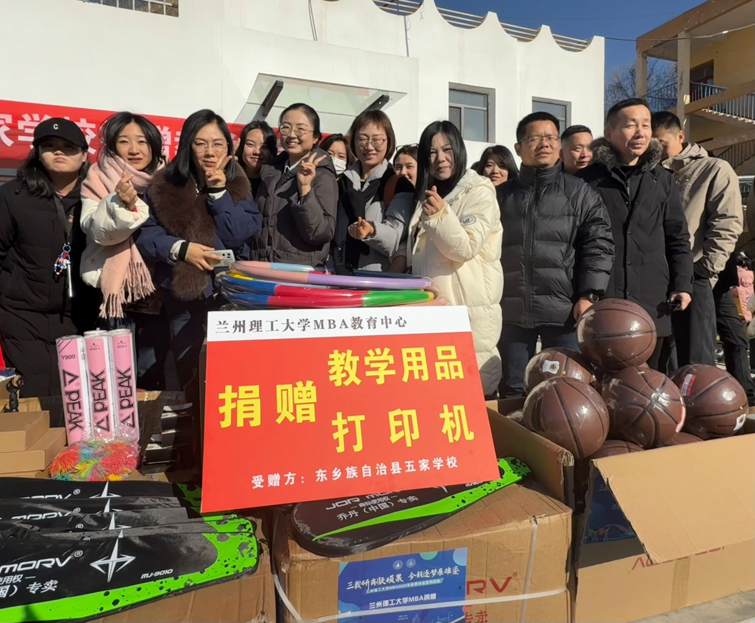 冬阳送暖,情满校园。11月28日上午,兰州理工大学帮扶东乡县五家乡五家学校捐赠仪式在五家学校操场举行。2025届MBA毕业生以实际行动践行企业社会责任,踊跃捐款购置打印机与教学和体育用品,为东乡县五家学校送去实在帮扶与温暖关怀。县教育局、五家乡相关负责人、五家学校全体师生与学校驻村工作队、MBA教育中心师生齐聚现场,以物资捐赠为纽带,将MBA学员的企业社会责任与五家学校的实际需求紧紧相连。