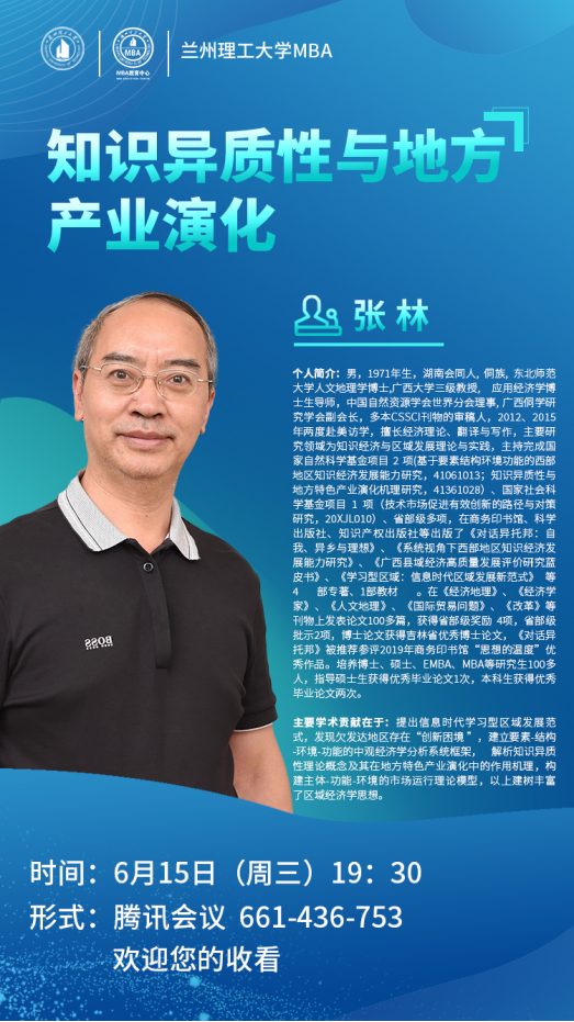 简介:张林,男,1971年生,现为广西大学商学院教授、应用经济学博士生导师。中国自然资源学会世界分会理事, 广西侗学研究学会副会长,多本CSSCI刊物的审稿人,2012、2015年两度赴美访学,主要研究领域为知识经济与区域发展理论与实践,主持完成国家自然科学基金项目 2 项、国家社会科学基金项目 1 项。在商务印书馆、科学出版社、知识产权出版社出版专著4 部。在《经济学家》、《国际贸易问题》、《改革》等刊物上发表论文100多篇,获得省部级奖励 4项,省部级批示2项,主要学术思想在于:提出信息时代学习型区域发展范式,发现欠发达地区存在“创新困境 ”,建立要素-结构-环境-功能的中观经济学分析系统框架, 解析知识异质性理论概念及其在地方特色产业演化中的作用机理,构建主体-功能-环境的市场运行理论模型等。