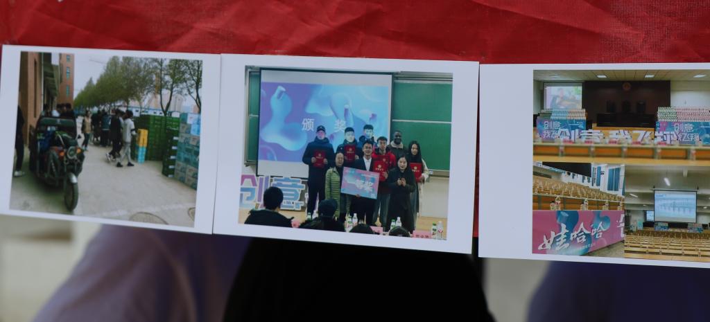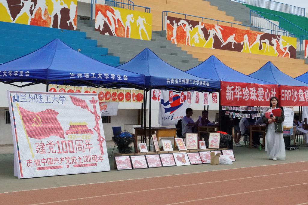 现场还有各个社团结合自身特色创作出的手工作品,如:用千余块魔方拼出的“庆祝中国共产党成立100周年”图案,以红色精神为内容的剪纸手工作品。同时还有党支部学习党史、为青年办实事的照片展示集。