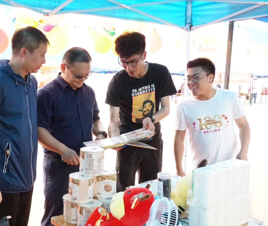 “经管文化节”不仅秉承着“载初心,忆党情”的活动宗旨,也极力推动着校园精神文明的建设。“修身养性,披林撷秀”的跆拳道表演,“步履不停,惊鸿千里”的舞蹈秀,团委学生会的风采展示,还有市场营销、创新创业等现场科创活动。开展的“以物易物”跳蚤市场,让学生亲身体验现代市场环境下商品交易过程,倡导绿色环保理念,促进资源的有效利用。同学们在享受一场场视觉盛宴的同时,也以高涨的热情参与到了活动中来,整个田径场都回荡着同学们的欢歌笑语。