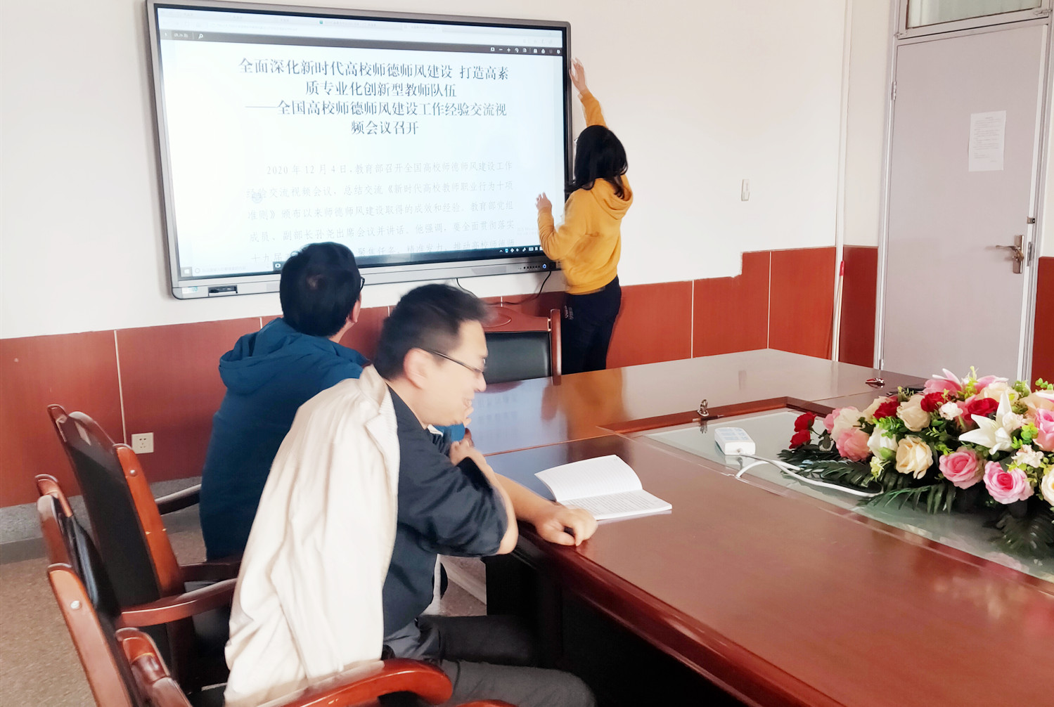 2021年4月20日下午,经济管理学院经济系召开会议,学习“全国高校师德师风建设工作经验交流视频会议”精神等。