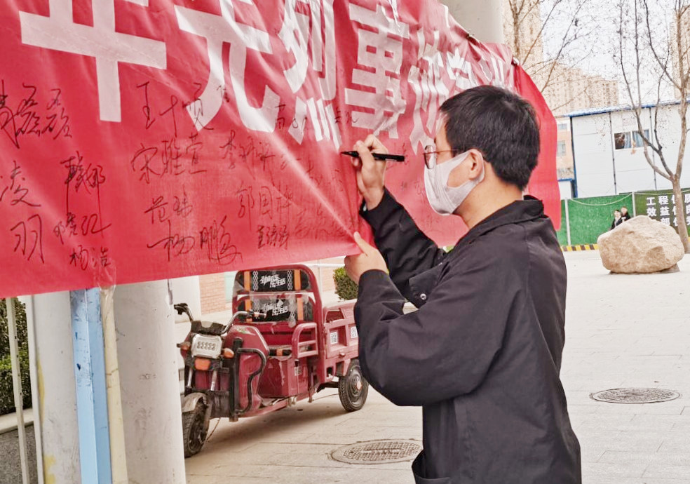 活动初始,经济管理学院新华珍珠社的社员们首先给同学们发放了一份有关革命红色故事的问卷,并积极引导同学们深入了解革命先烈的生平事迹,引起了同学们内心深处强烈的情感共鸣。“清明时节雨纷纷,路上行人欲断魂”,冷风习习,但参与者们热情高涨,饱含着一腔爱国情。最后,参加活动的同学们在志愿横幅上签上了自己的名字,此次活动圆满结束。