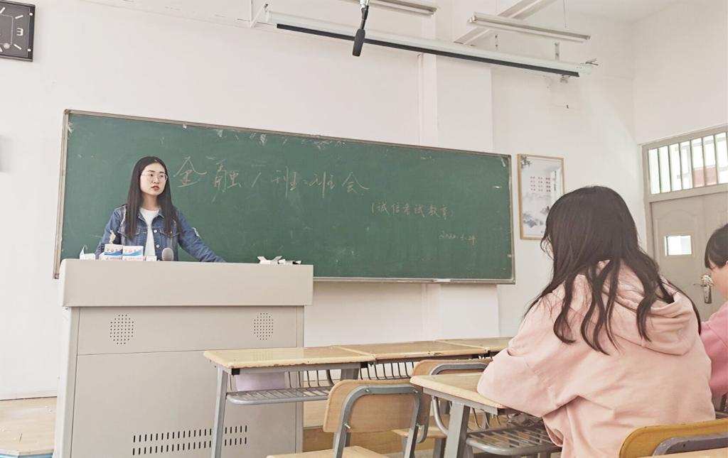 为提高同学们的诚信考试意识,培养诚信教育思维,积极推进班级诚信学分建设,3月25日,经济管理学院20级金融学一班在彭家坪西校区集贤楼201教室开展了“诚信教育,诚信考试”主题班会,班会由班主任醴静老师主持,全体同学参加。