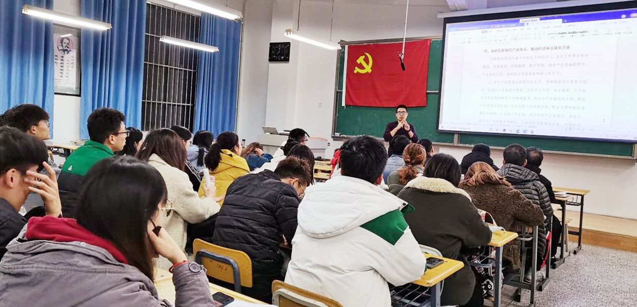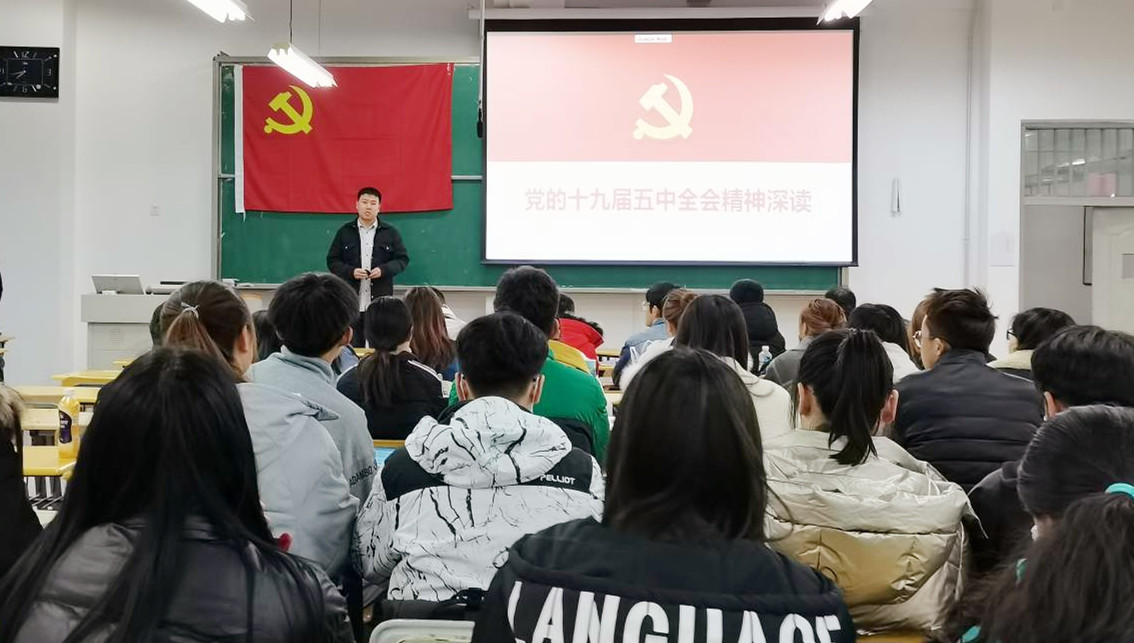 2020年11月26日下午,经济管理学院工商管理本科生党支部开展“学习十九届五中全会精神”支部党课学习活动。本次活动邀请经济管理学院党委委员马亮老师作分享报告,支部书记张凡老师主持,工商管理党支部,市场营销党支部预备党员、正式党员参加。