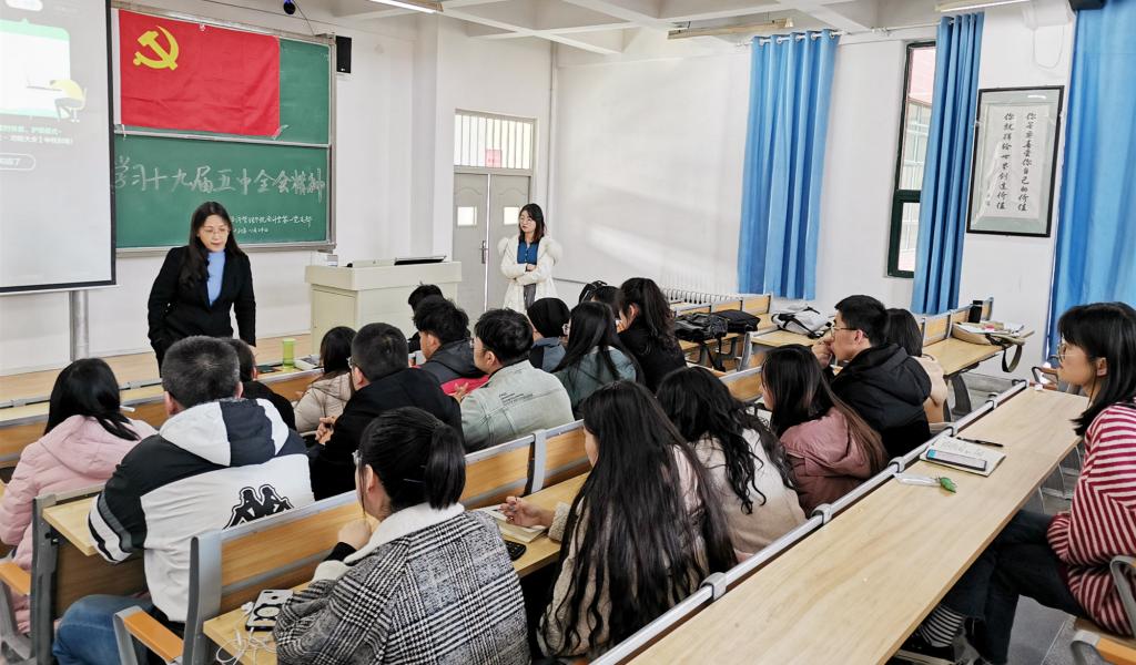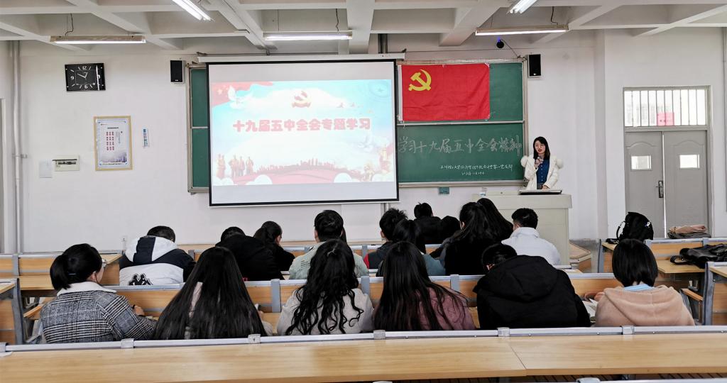 会议过程中,全体党员同志仔细学习十九届五中全会中心思想,认真聆听马丽老师的解读与讲授,做好学习笔记,抓住教育事业、科学文化、经济发展等几个重点,坚持社会主义办学方向,把立德树人作为教育的根本任务,要优化同新发展格局相适应的教育结构、学科专业结构、人才培养结构、完善终身全名学习推进机制,立足于服务国家区域发展战略,发挥高校在科研中的重要作用,推动重要领域关键核心技术攻关,推进长三角一体化,推动经济发展,贯彻落实习近平总书记的重要讲话与全会精神。