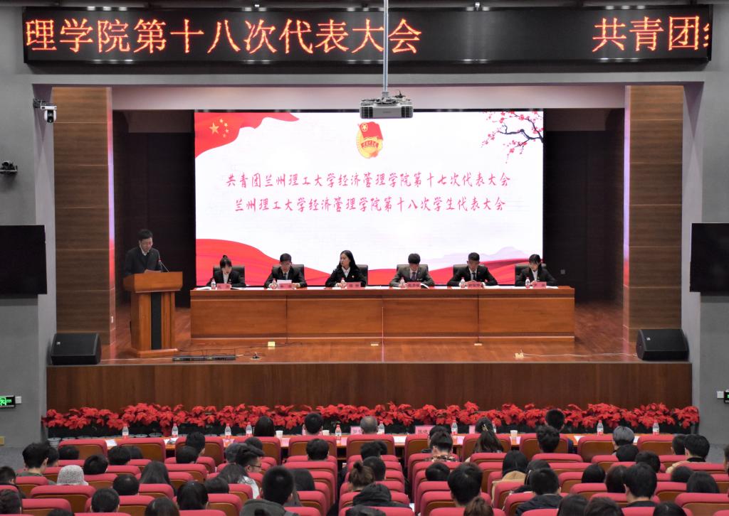 在全国上下深入学习全国青联二十七大会议精神和习近平总书记贺信精神,努力贯彻落实团中央十八大各项工作部署,兰州理工大学奋力开创学校建设新局面,深入推进共青团改革的形势下,共青团兰州理工大学经济管理学院第十七次代表大会暨兰州理工大学经济管理学院第十八次学生代表大会于2020年11月13日晚在彭家坪校区图书馆106报告厅召开。本次大会的嘉宾有兰州理工大学团委副书记张晓锋、经济管理学院党委书记罗繁荣、法学院辅导员焦焱博、校学生会代表李萌以及各兄弟学院团委、学生会代表。经济管理学院辅导员李焕生老师、醴静老师、张晚霞老师参加会议,全院共160名代表参加会议。会议由经济管理学院团委老师许丹主持召开。