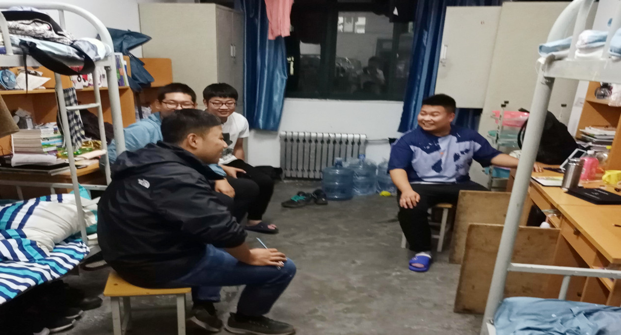 辅导员张凡前往彭家坪校区南B宿舍楼,与20级新生深入交谈,了解学生思想动态与现实生活状态。
