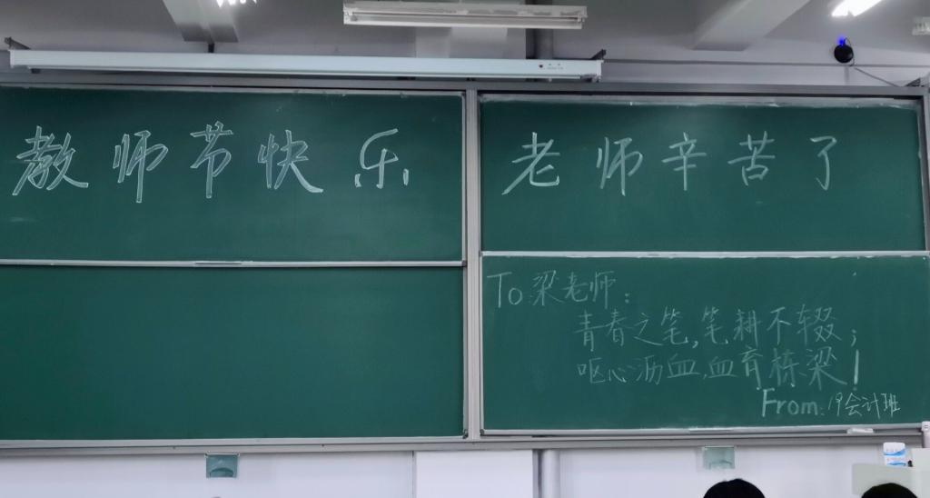 活动由各班自行组织,同学们课前在黑板上书写教师节相关祝福语方式来表达对老师的感谢,有的班组织同学全体起立向任课老师表达尊敬和感激,为任课老师准备教师节礼物和花束,祝愿老师们身体健康、工作顺利。同学们的真挚感谢为第36个教师节增添温暖祥和的节日气氛。