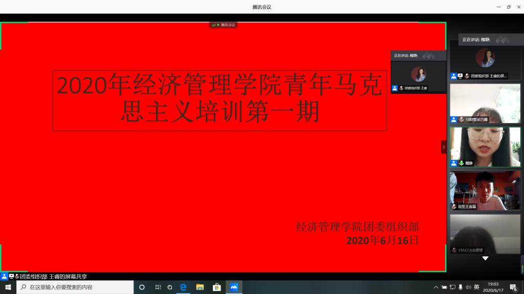 2020年6月17日,兰州理工大学经济管理学院举办的2020年第一期青马工程培训之“疫情之下,我们都是逆行者”在腾讯会议上展开。