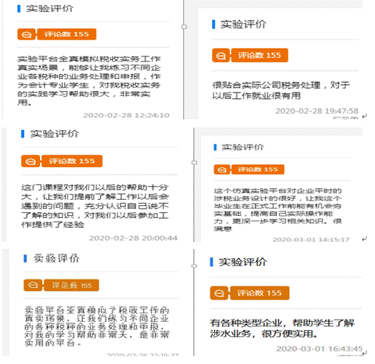 兰州理工大学《EPC金税虚拟仿真实验教学项目》的金税平台模拟企业真实的办税场景,通过增值税开票系统、认证系统、电子发票系统、各税种报税系统,把企业报税案例和真实的报税系统融为一体,使学生掌握企业报税具体操作流程的税收本质,全面熟悉国家税收政策,培养学生办税技能,实现学生和税务管理岗位的无缝对接。通过参加试用实验课程,同学们普遍对于实验平台的功能与服务反响良好。