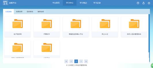 进入实验平台后,上面有学习中心,里面有“办税指南”、“微课资源”、“税收新政”、“填表说明”等内容,都是根据国税总局最新的政策提供的学习资料。点击“进入课程”就可以开始实验了。