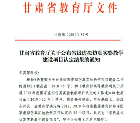 2019年,《EPC金税虚拟仿真实验》被甘肃省教育厅认定为省级虚拟仿真实验教学建设项目,并推荐参加国家虚拟仿真实验项目的遴选。