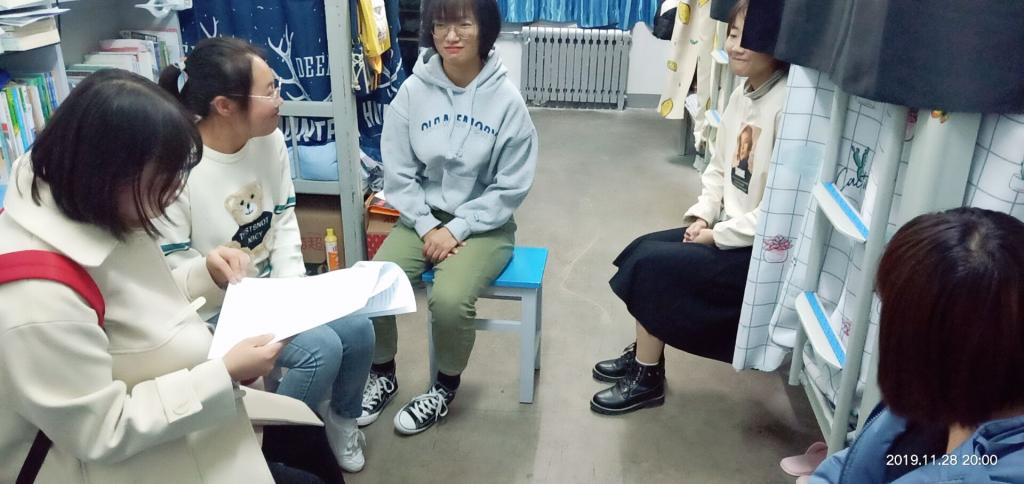 2019年12月3日晚,财务管理本科生党支部11名党员代表,进入2019级财务管理一班各宿舍,开展“党旗引领,支部联系宿舍”活动,与2019级新生共同讨论“大学生道德素养提升如何为当代追梦人提供精神动力与道德滋养”,倡议大学生道德素养规范,并对新生在近期学习、生活中出现的问题进行了解答。