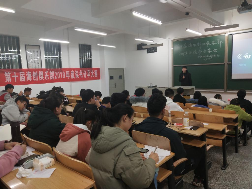 为弘扬中国传统文化,增强同学们文化自信,鼓励大家读好书,好读书,第十届海创俱乐部读书分享大赛于2019年11月30日在西教4-206举办。海尔创业俱乐部全体人员踊跃参加。