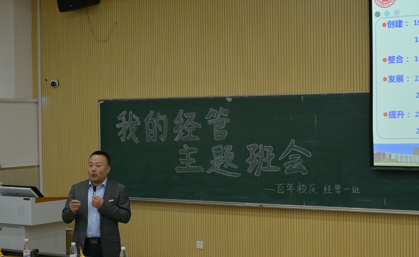 十年树木百年树人三尺讲台铺锦绣。19日下午,兰州理工大学经济管理学院在北401教室举办了以“我的经管”为主题的主题班会。此次班会中,主题班会组承担了布置教室的任务,购买班会所需用品,按时按点将教室布置好后,迎接校友的到来。主题班会后经济管理学院热烈欢迎海内外校友重返母校暨再上一堂课的活动在崇理楼401举行。经济管理学院院长张清辉教授、学院各部门相关负责人、教师代表、海内外的校友共100多人参加了活动。本次活动在院长张清辉教授关于学院的发展历程,学科建设以及取得的辉煌成果中拉开序幕。在此过程中,各位校友与院长相交甚欢,共谋学院发展大计。张清辉教授阐述完毕学院发展概况,由各位校友选出的我们最喜爱的6位老师共同为在场的校友再次奉献一节意味深长的教学活动。