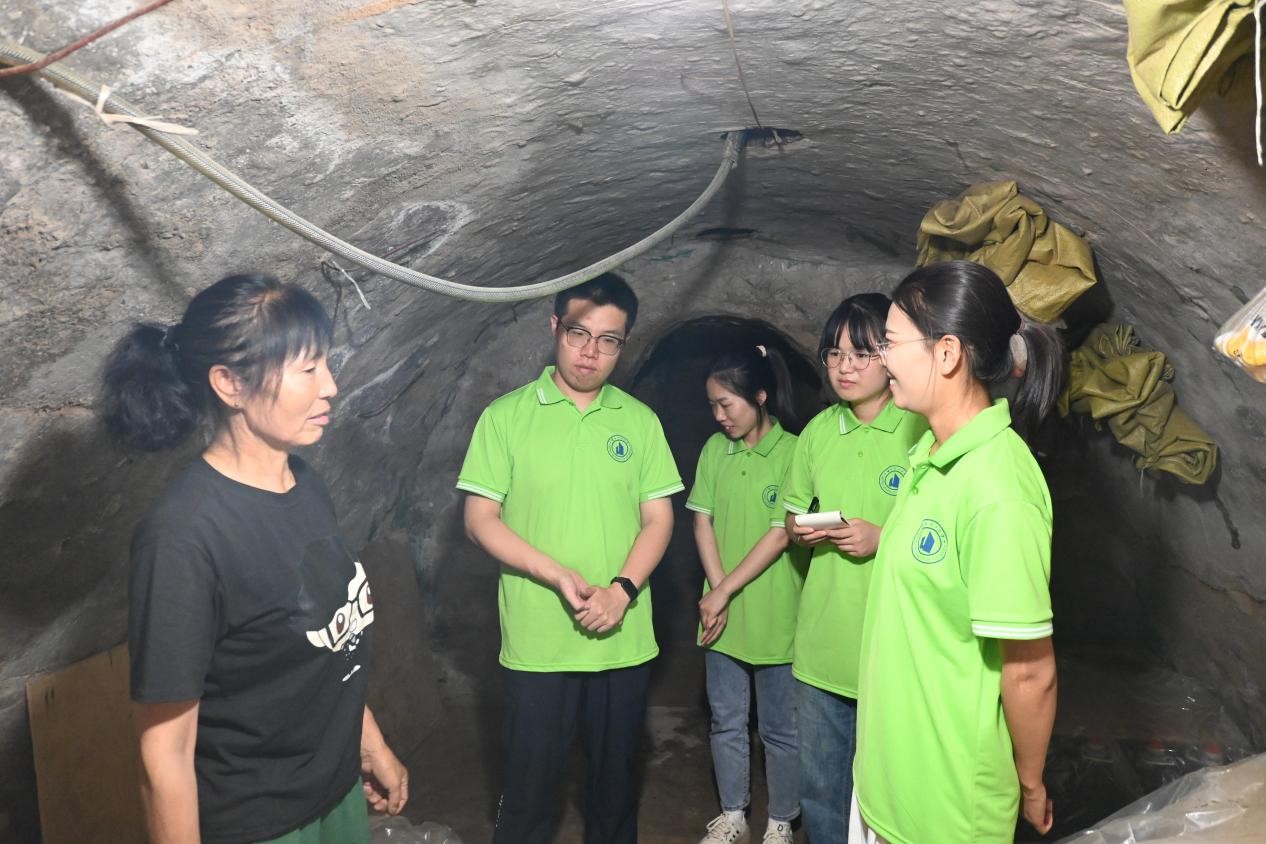 实践团队在醋坊工作人员的带领下,参观了贮存醋的地窖和基础设施等。了解到制醋是当地的一种习俗,当地一直使用古老而精致的传统手艺制醋。青城陈醋以精选的小麦、豌豆、小米、麸皮为原料,经过制曲、煮醋、制醋、压醋、淋醋等流程,其制作工艺独特,流程复杂,不添加任何化学制剂,完全靠手工酿制而成,具有色黑、香浓、味醇等特点。