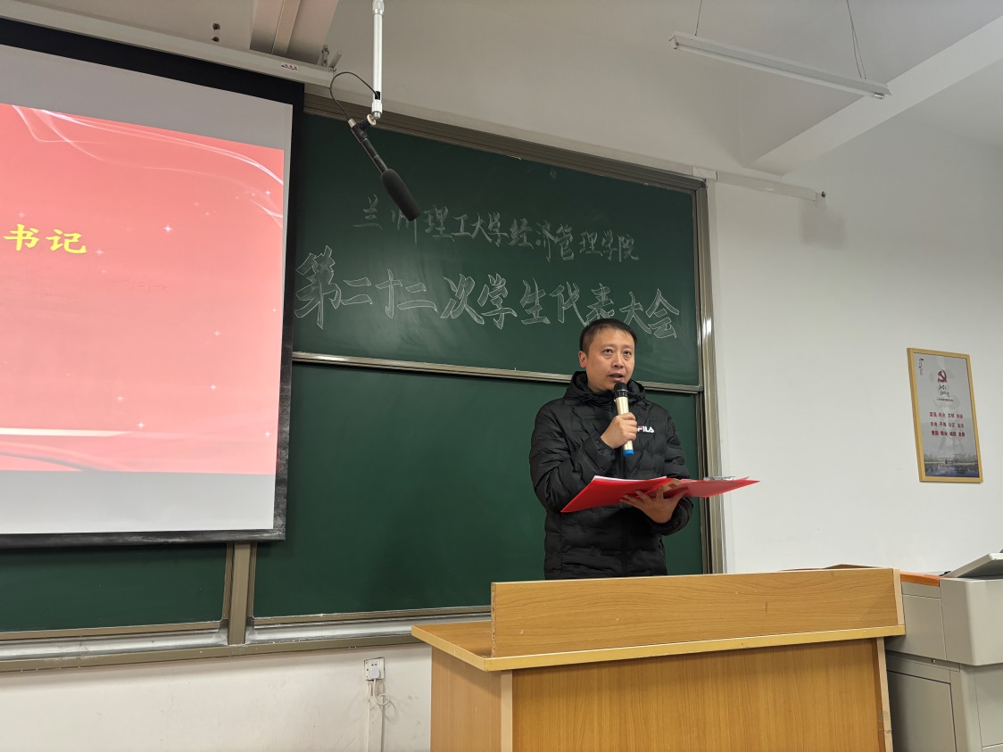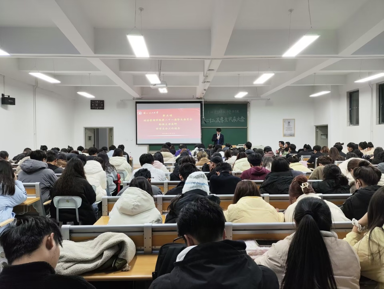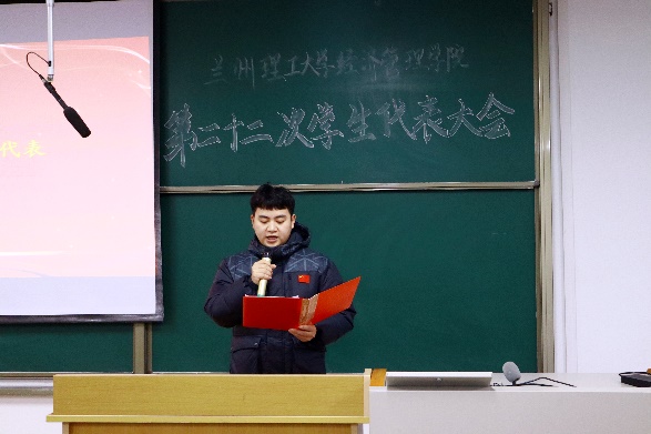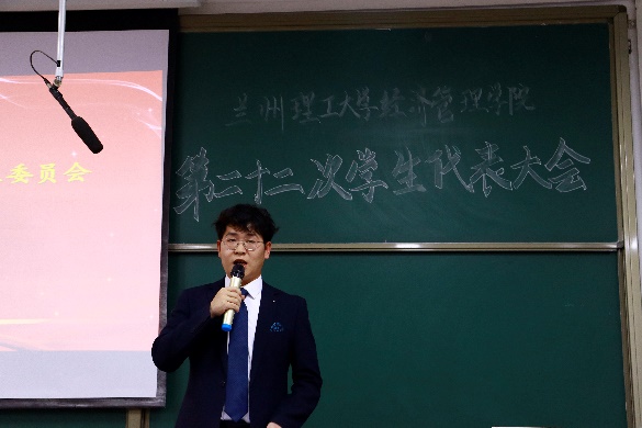 11月25日晚,经济管理学院第二十二次学生代表大会在彭家坪校区抒望楼107教室召开,学院党委副书记王翀、辅导员许丹、校学生会代表王启寒、兄弟学院代表以及全院150名学生代表出席了本次会议。
