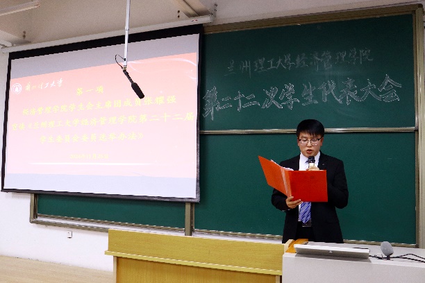 大会审议了上届学生会工作报告和《兰州理工大学经济管理学院第二十二届学生委员会委员选举办法》,投票选举产生了第二十二届学生委员会委员及主席团成员,会议完成既定议程,圆满结束。