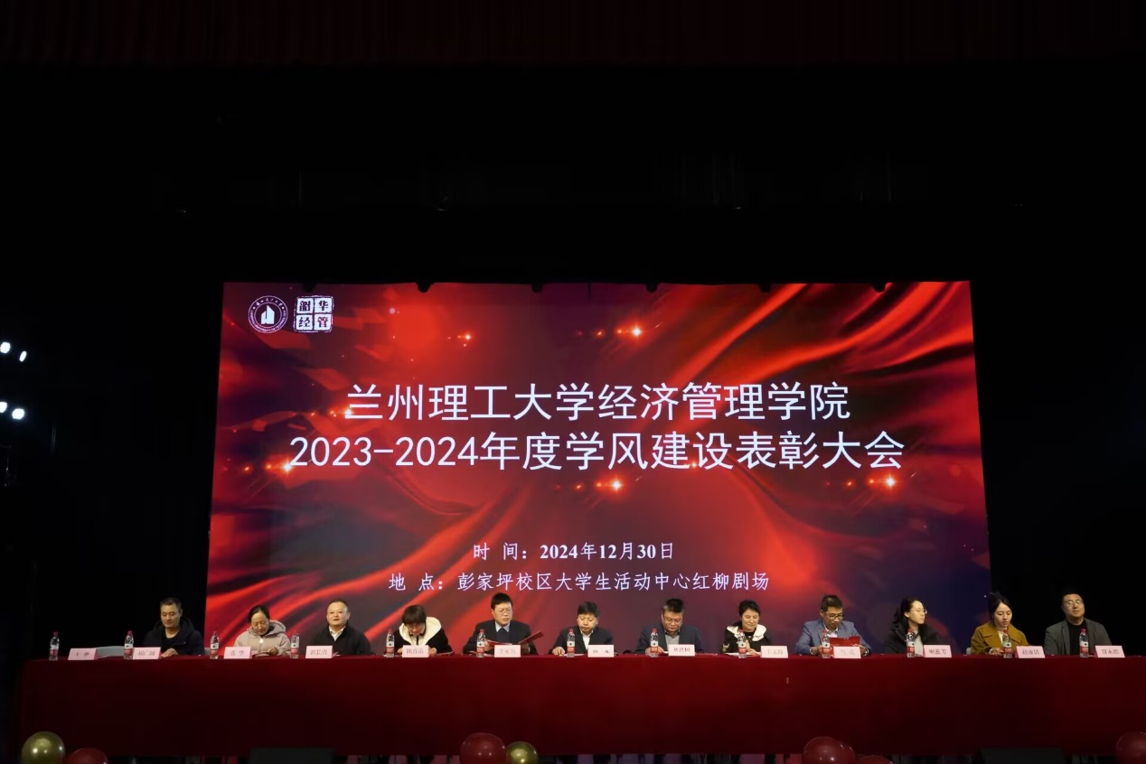 2024年12月30日,经济管理学院在彭家坪校区大学生活动中心红柳剧场举办经济管理学院2023-2024学年学风建设表彰大会暨“环沐毓秀,境涌华光”迎新晚会。学校党委学生工作部、校团委、学生就业指导服务中心领导、学院班子成员、系主任、辅导员、班主任、获奖学生代表和2024级全体新生参加了表彰大会,会议由学院党委副书记王翀主持。