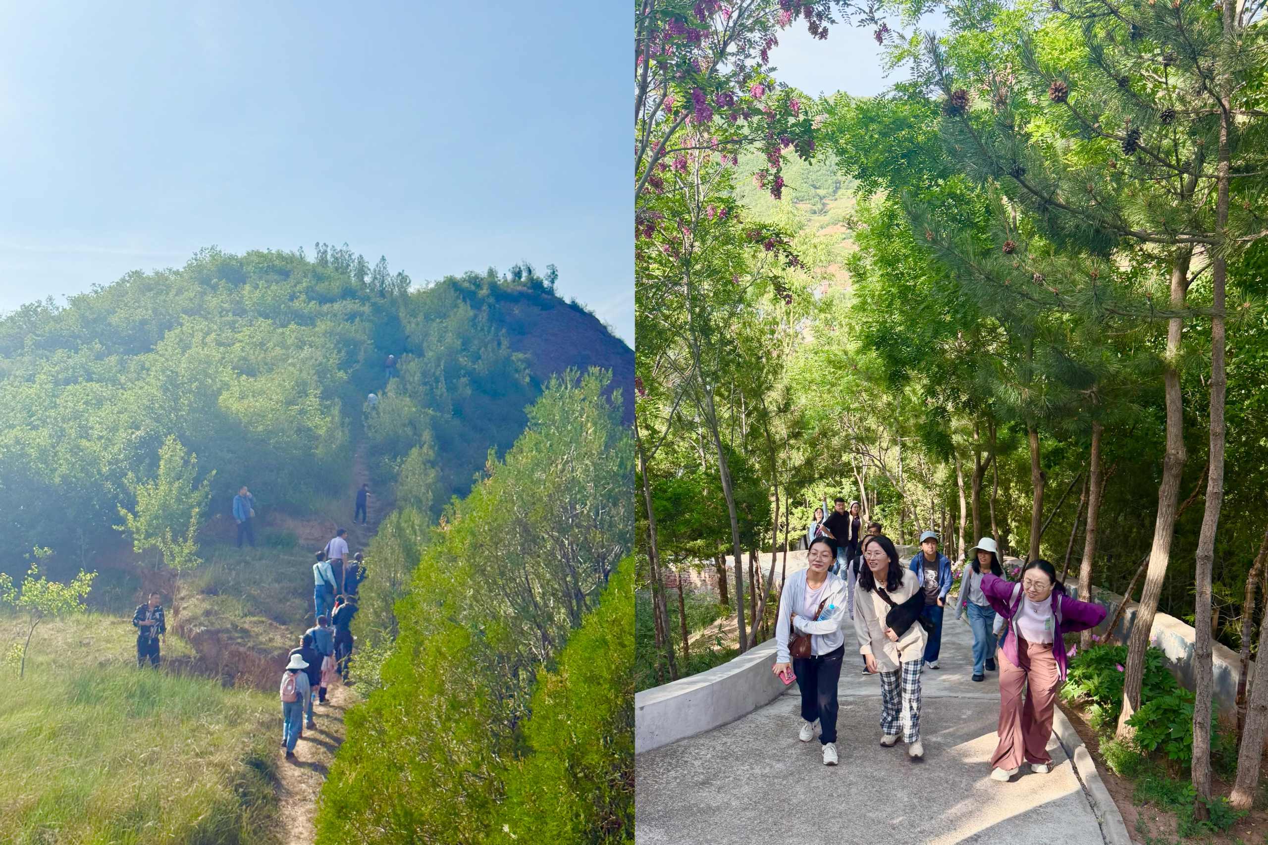 登顶后的景色,是大自然给予的最美“回报”。老师们驻足远眺、俯瞰群山美景,将七里河的秀丽风光尽收眼底。在这远离喧嚣的山顶,平日里忙碌于教学科研的压力悄然消散,取而代之的是对生活的热爱与对团队的温情。