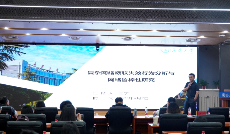 长安大学王宁教授作了题为“复杂网络级联失效行为分析与网络鲁棒性研究”的报告。他介绍了网络故障导致的多重网络连锁失效现象,分析了基于过载行为的级联失效,并将流行病传播机制引入级联失效研究中,提出了一个结合病毒传播和负载重分配的复合模型。他的研究结果为理解和控制复杂网络中的级联失效提供了新的视角,并为相关系统的抗灾能力提升提供了理论支撑,对复杂系统的管理和优化提供了有价值的参考。