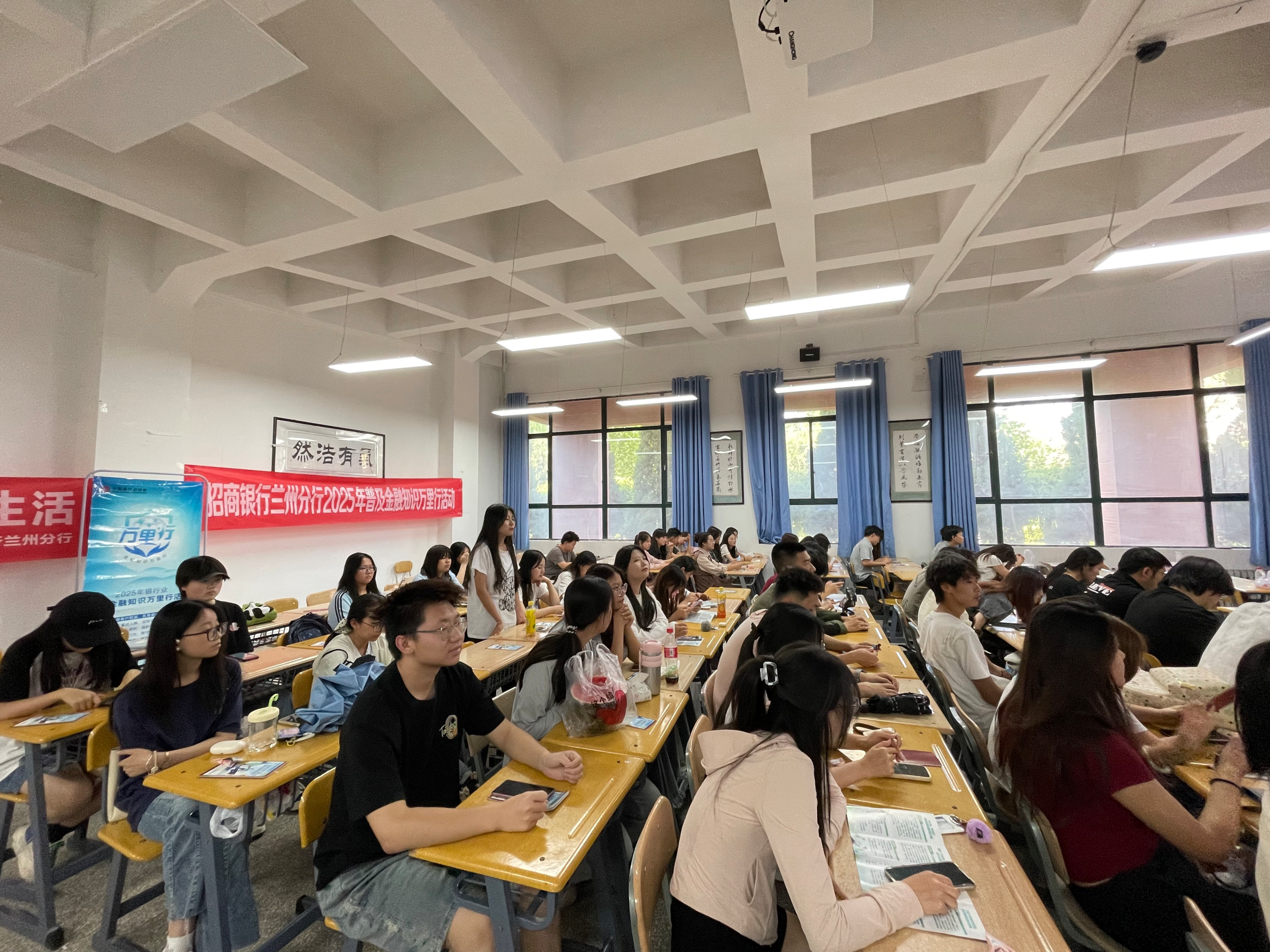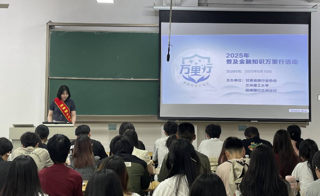 为提升大学生金融素养,6月10日下午,经济管理学院联合甘肃省银行业协会、招商银行兰州分行,在彭家坪校区开展 “普及金融知识万里行” 校园宣讲活动,学院大一全体学生参与。