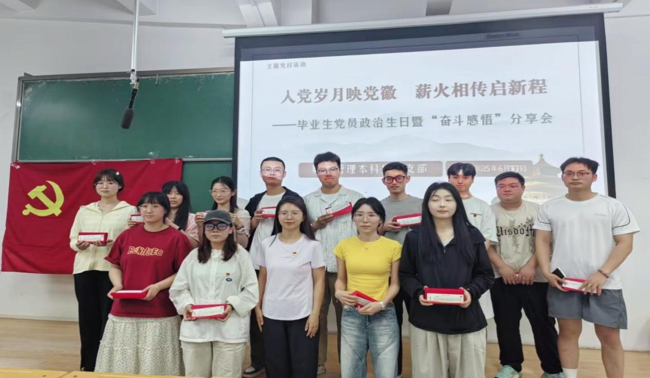 此次主题党日活动采用“理论学习+仪式教育+榜样示范”的模式,既是一次深刻的党性锤炼,更是一场极具感染力的榜样引领。希望每一位毕业生党员在各自的岗位上乘风破浪,积极发挥党员先锋模范作用。也希望财务管理本科生党支部的全体党员努力成为讲党性、敢担当、有作为的新时代青年党员,以实际行动践行青春誓言!(图文:郝苗苗;终审:张清辉)