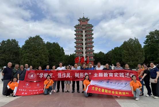 活动首日,实践团成员在中国工农红军一二四方面军会师纪念塔前缅怀时,恰巧与开展“学规定、强作风、树形象”主题教育实践活动的学校教师团队相遇,一支朝气蓬勃的学生队伍与一支沉稳笃行的教师队伍,不期而“会”。大家共同仰望这座精神的灯塔。