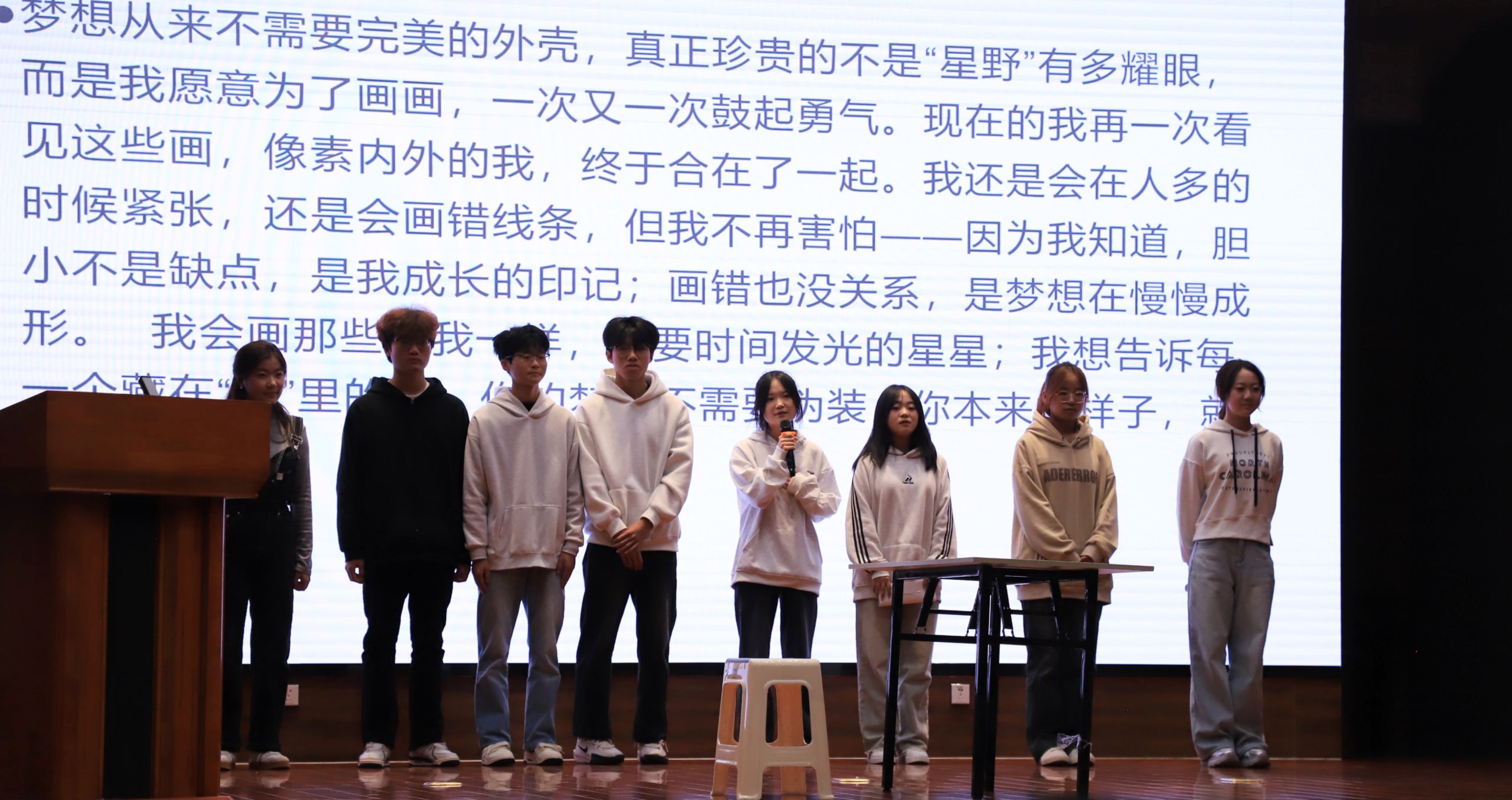 经初选后的七支参赛队伍在决赛中围绕自我探索、人际关系等主题进行了剧本编创和表演。《镜中人⟫以一场与镜中自我的对话,完成自我否定与自我接纳的深度和解;《破茧•追光⟫生动地展现了如何一步步挣脱失败的恐惧牢笼;工商、会计等班级也针对新生的心理困惑交出了他们的答卷。经激烈角逐,2025级金融学1班的《镜中人⟫荣获一等奖。