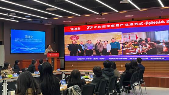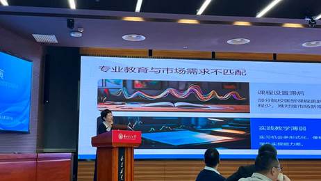 兰州理工大学刘亚卓老师则围绕“以赛育人、以赛促学”的理念,介绍了学生专业竞赛培育的宝贵经验。全国大学生数字贸易综合能力大赛组委会秘书长易建安以浙江范式为例,作了《政产学研赛创新混合赋能数字贸易人才培养》的报告,为数字贸易人才培养提供了新思路。