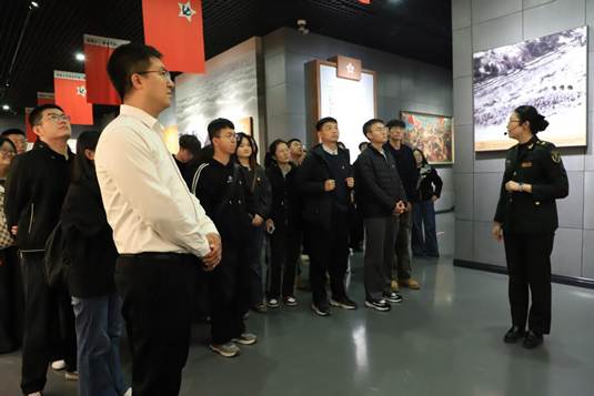 在讲解员引导下,师生参观了红军会师纪念馆,通过珍贵的历史文物、文献资料与复原场景,沉浸式追忆红军长征的艰苦卓绝,深刻体悟不怕牺牲、百折不挠的长征精神。参观结束后,贾永胜老师结合现场展陈作专题讲解,深入阐释了长征精神的时代内涵与当代价值。