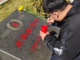 随后,大家观看红色主题合唱与朗诵,重温烽火岁月,感悟革命先辈为民族独立与人民解放事业视死如归的坚定信仰。在烈士墓区,师生们俯身悉心擦拭墓碑,并手持毛笔,饱含敬意地为因风雨侵蚀而淡化的碑文一笔一划描红。每一次擦拭,都是对历史的守护;每一笔描摹,都是对英名的重温与精神的接续。师生还将亲手书写的缅怀信笺投入信箱,字里行间流淌着真挚的敬仰。